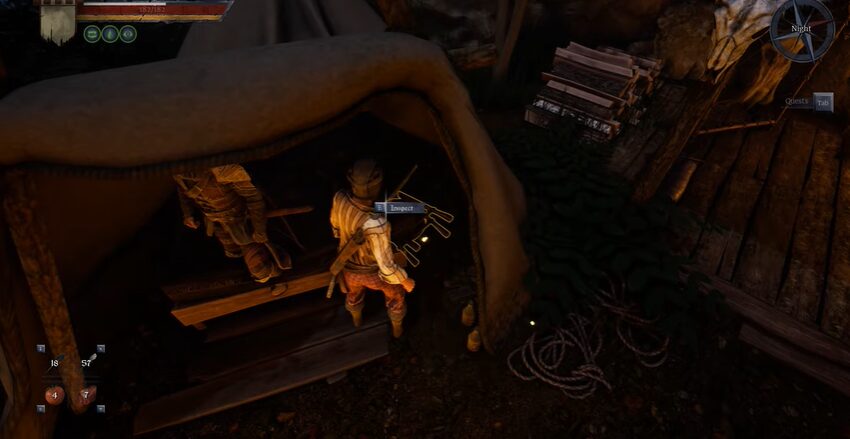 The first target is hidden in the tent. To start the quest, just find the first Target in the tent below.